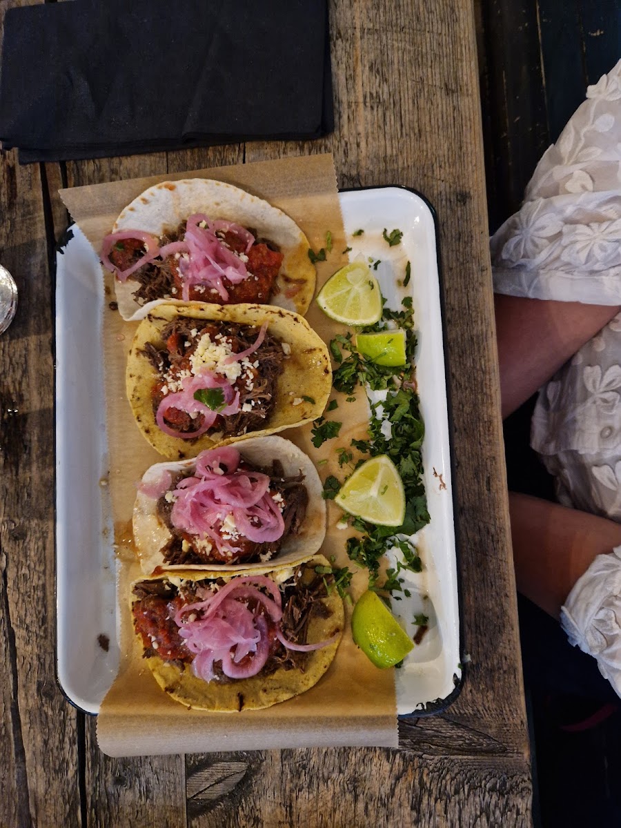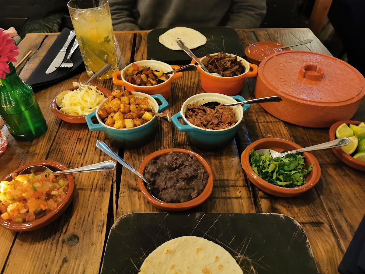 Food was very good. Had the Al Pastor tacos and Mole tacos. Started off with the queso fundido. The portion was smaller than expected but the taste was delicious! Ordered two spicy margaritas, the first wasn't spicy enough so I asked for the second to be way spicier. It was! I also started off with the Yumas mezcal flight and all mezcales were very good. Finished off with the lemon dessert and it was also very tasty. Highly recommend this restaurant if you're craving authentic Mexican cuisine!